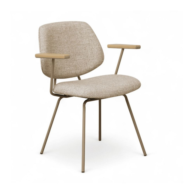 Sofia söögitool käetugedega on kaetud pehme beež bouclé kangaga, mis tagab mugavuse ja stiilse välimuse. Tooli raam ja jalad on valmistatud beež metallist, luues ühtse ja elegantsee disaini. Käetugi pakub lisaturet, muutes tooli eriti mugavaks pikemaks istumiseks. Mõõdud: 58x50x82 cm. Istme kõrgus 49 cm, sügavus 43,5 cm ja laius 49 cm. Käetoe kõrgus 67 cm ja seljatoe kõrgus 33 cm.