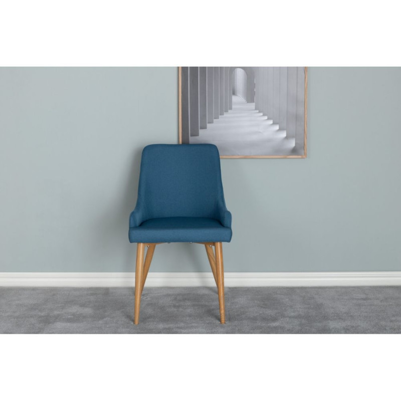 Stiilne söögitool Plaza seeriast, mis loob võluva keskpunkti kodu südames. Kaasaegne ja läbimõeldud disain ühendab tammepuiduga kaetud metallraami ja sinise polüestrist kangast seljatoe ning istme pehme polsterdusega. Tool on nii esteetiliselt kaunis kui ka mugav istuda. Istme kõrgus 48 cm, laius 50 cm ja sügavus 59 cm. Kandevõime 120 kg. Nõuab kerget kokkupanemist.