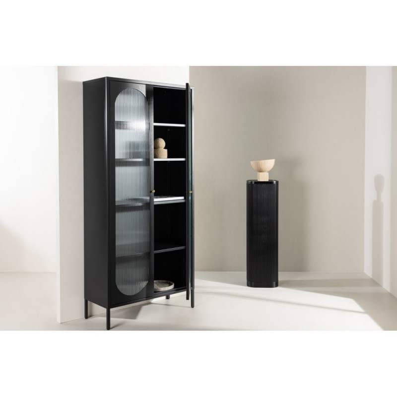 Lima vitriinkapp on praktiline ja stiilne mööbliese, mis sobib suurepäraselt kaasaegsesse kodukaunistusse. See elegantne must terasest kapp pakub stabiilset ja vastupidavat konstruktsiooni. Kaasaegne ja minimalistlik disain on maitsekas täiendus teie kodule. Kapil on neli vaheriiulit, mis pakuvad palju ruumi asjade organiseerimiseks. Kaks ust on valmistatud lainelisest klaasist, mis lisab huvitava visuaalse mõõtme ja tekstuuri. Lima vitriinkapp ühendab funktsionaalsuse stiilsusega, luues elegantse ja korrastatud atmosfääri teie kodus.