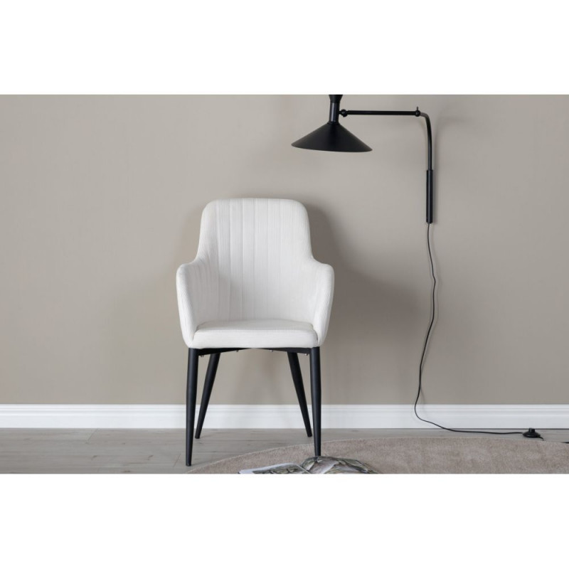 Stiilne söögitool Comfort seeriast, mis ühendab moodsaid disainielemente 1950ndate nostalgiaga. Tool on polsterdatud pehme valge Manchester polüesterkangaga, mis tagab mugava istumiskogemuse. Musta pulbervärviga kaetud metallist jalad tagavad tooli vastupidavuse ja stabiilsuse. Seljatoele ja käetugidele lisatud dekoratiivsed õmblused muudavad disaini veelgi atraktiivsemaks. Istme kõrgus 48,5 cm, laius 50 cm ja sügavus 45 cm. Tool müüakse 2-pakendis.