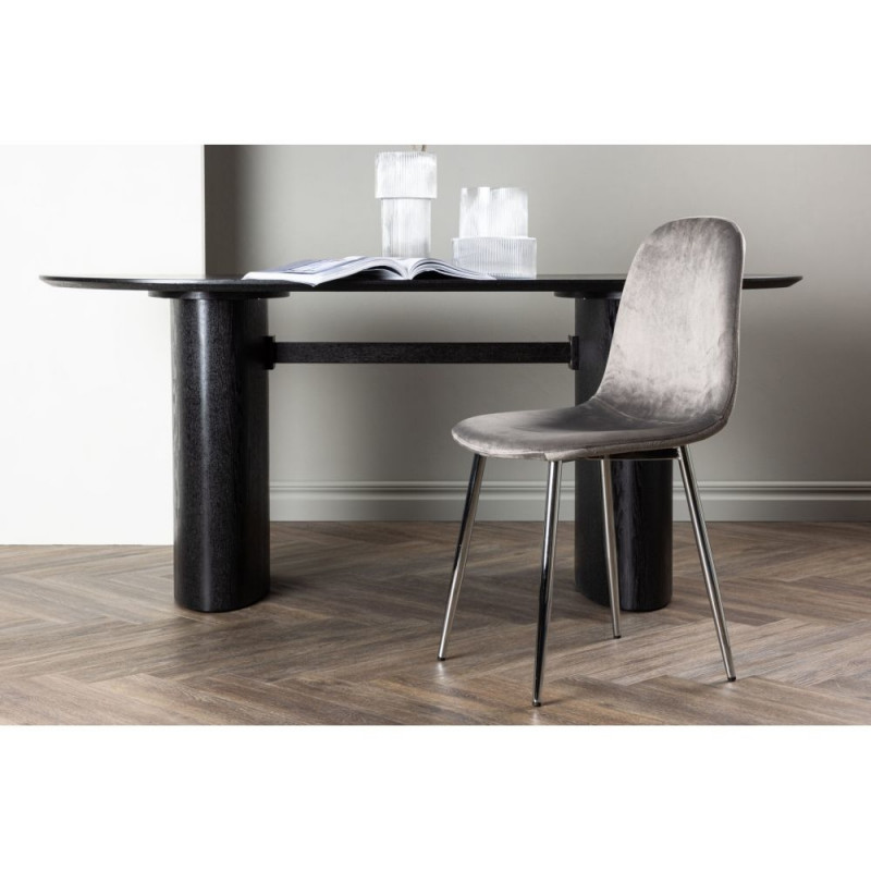Moodne unistuste tool sarjast Eva ajatuna helehallis värvitoonis! See täielikult polsterdatud söögitool kergelt ümmardatud seljatoega on kaetud sametise kangaga ning jalad on helehallist metallist. Tool on sama mugav kui ka silmapüüdev. Istme kõrgus 44 cm, laius 44,5 cm ja sügavus 38 cm. Kandevõime 150 kg. Müüakse ainult 2-pakendis.