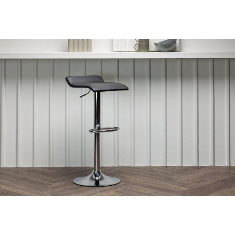 Ajatu disainiga Jonna baaritool, mis muudab teie köögi või elutoa stiilseks ja mugavaks. Tooli iseloomustab elegantne kujundus kroomitud terasest trumlijalaga ja lihtsa mustast kunstnahast istmega. Ideaalne asetada köögi baari äärde või kõrgema söögilaua ümber. Istme kõrgus 56 cm, laius 38 cm, sügavus 31 cm. Kandevõime 120 kg. Müüakse ainult 2-pakendis.