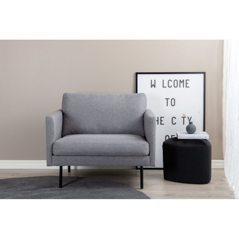 Zoom on stiilne ja mugav tugitool, mis toob teie elutuppa luksuslikkust ja elegantsi. Halli polüester kate lisab tootele ainulaadse sära, mis sobib suurepäraselt kaasaegse või põhjamaise stiiliga interjööriga. Selle sirge disain, õhukesed metallist jalad ja sügav istumissügavus loovad avara ja kutsuva atmosfääri. Tugitool muudab iga ruumi pilkupüüdvaks ja pakub suurepärast istumismugavust. Istme mõõdud: laius 83 cm, sügavus 54 cm, kõrgus 47 cm. Käetoe kõrgus 65 cm.