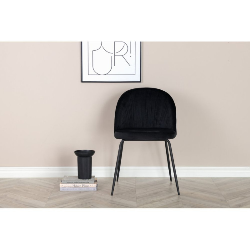 Moderne tool, mis sobib kõigile – mugav, stiilne ja kaasaegne! Wrinkles söögitoolil on eksklusiivne täielikult kaetud disain, millel on musta pulbervärviga kaetud metalljalad. Ümar seljatugi ja iste pehme polsterdusega, kaetud kortsus musta sametkangaga, mis loob stiilse ja kutsuva terviku. Istme kõrgus 49,5 cm, istme laius 47 cm, istme sügavus 42 cm.