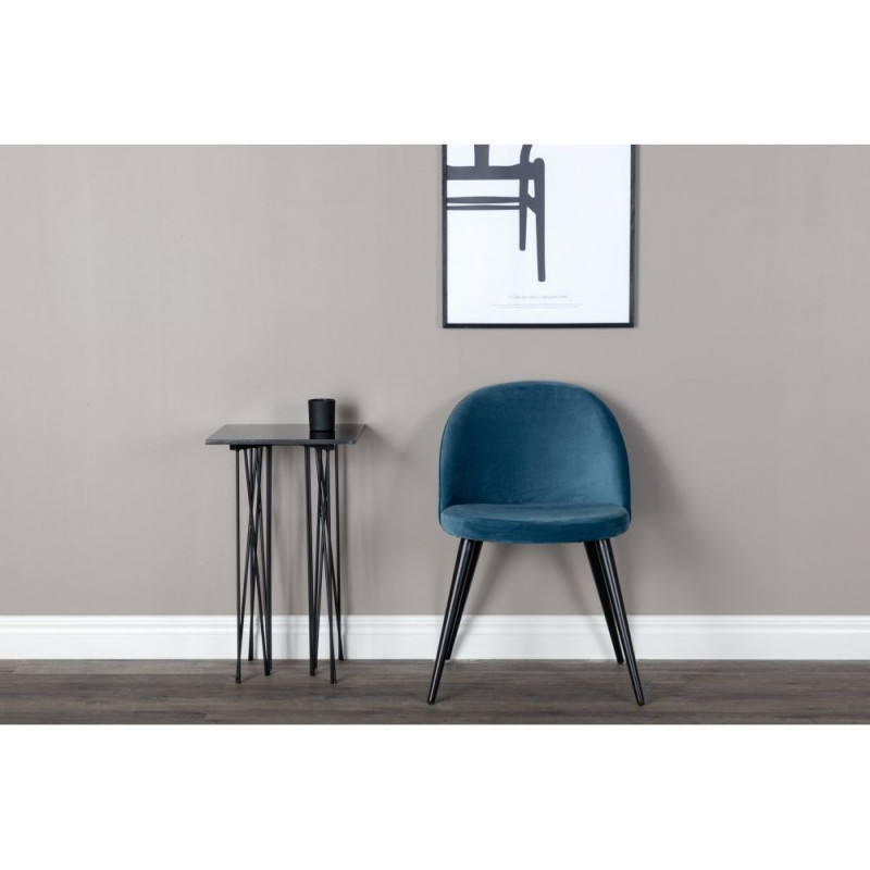 Velvet söögitool pakub erakordset mugavust tänu pehmele polsterdusele ja sametkangale. Vastupidav metallkonstruktsioon tagab toole pikaealisuse ja musta pulbervärvitud jalad lisavad elegantset šarmi. Tool sobib suurepäraselt kasutamiseks nii elutoas, söögitoas kui ka köögis, tuues ruumi soojust ja stiilset aktsenti. Istme kõrgus on 46,5 cm, laius 41 cm ja sügavus 42,5 cm.