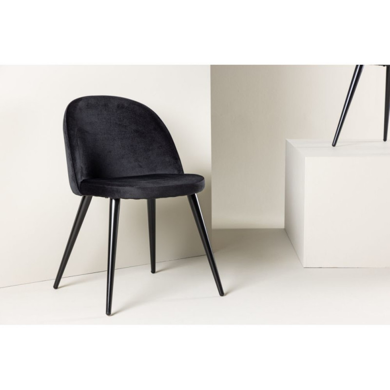 Stiilne söögitool VELVET pakub täiuslikku kombinatsiooni mugavusest ja elegantsest disainist. Tool on kaetud pehme musta sametkangaga ning sellel on ümardatud seljatugi ja iste pehme polsterdusega. Musta pulbervärviga kaetud metalljalad lisavad toolile kaasaegset šarmi. Sobib suurepäraselt söögituppa või kööki, tuues ruumi soojust ja stiilset aktsenti. Istme kõrgus 46,5 cm, laius 41 cm ja sügavus 42,5 cm. Kandevõime 110 kg.