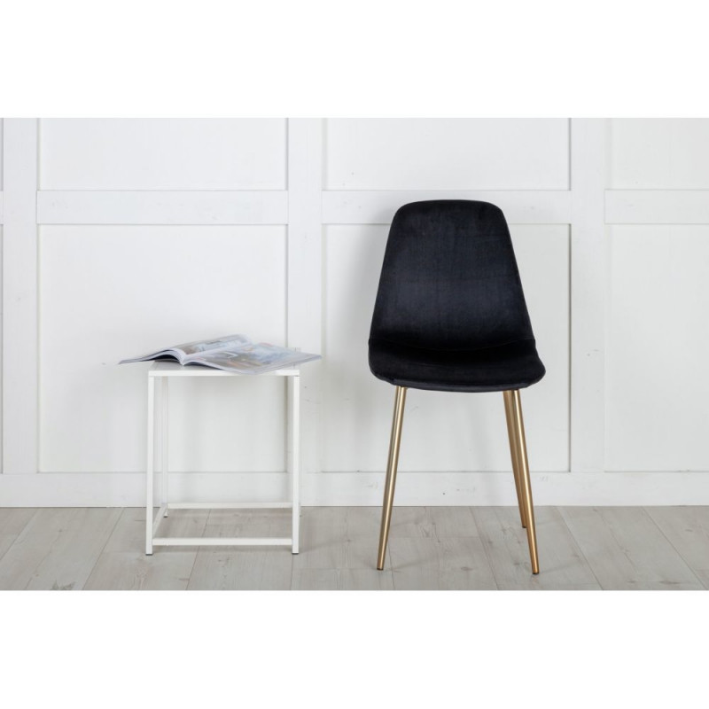Elegantne söögitool luksuslikku puudutusega! Polar on täielikult polsterdatud disainiga, millel on messinkviimistlusega metallist jalad ja õrnalt ümardatud seljatoega ning iste siledat musta sametist kangast pehme polstriga lisamugavuse jaoks. Istme kõrgus on 48 cm, laius 44 cm ja sügavus 39 cm. Kandevõime kuni 110 kg. NB! Toodet müüakse ainult 2-pakendis.
