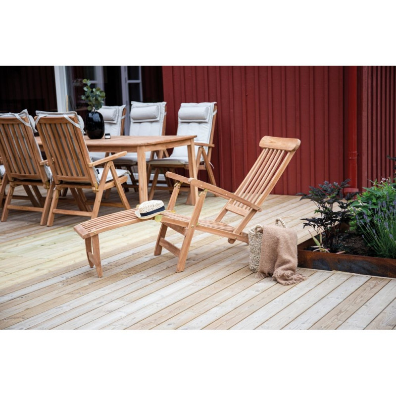Luksuslik, stiilne ja funktsionaalne lamamistool Kenya seeriast, mis võimaldab nautida suvepäikest mugavalt! Klassikaline puidulook loob terrrassil meeldiva ja hubase tunde. Tiikpuust valmistatud lamamistool on vastupidav ja tugev. Tõstke jalad üles ja lõõgastuge - siin soovite kindlasti veeta palju imelisi hetki tulevikus! Istme kõrgus on 36 cm, laius 51 cm ja sügavus 125 cm. Kandevõime on 120 kg.