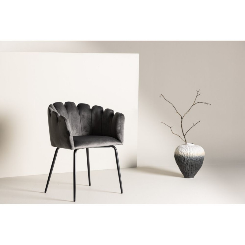 Elegantne ja mugav söögitool Limhamn seeriast. Täielikult polsterdatud modernne disain halli sametkangaga ning mustad pulbervärviga kaetud metallist jalad. Dekoratiivne seljatugi dekoratiivsete õmblustega loob stiilse välimuse. Sobib suurepäraselt kokku trendikas söögitlaua ja teeb perekokkutulekutest veel meeldejäävamad. Istme kõrgus 47 cm, laius 46 cm ja sügavus 41 cm.