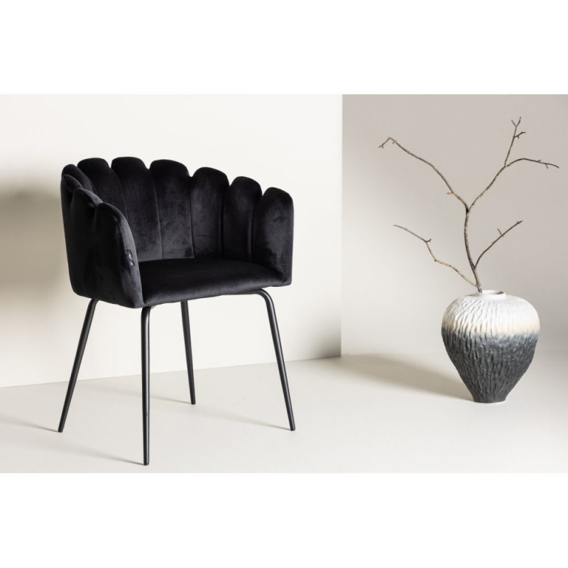 Elegantne ja kutsuv söögitool, mis sobib täiuslikult igasse kaasaegse kodu südamesse. Limhamn söögitool pakub mugavat istumist tänu ümarale istmele ja dekoratiivsele karpkujulisele seljatoele. Tool on kaetud pehme musta sametise kangaga ning jalad on valmistatud mustast pulbervärviga viimistletud metallist. Istme mõõdud: kõrgus 47 cm, laius 46 cm, sügavus 41 cm. Kandevõime kuni 100 kg.