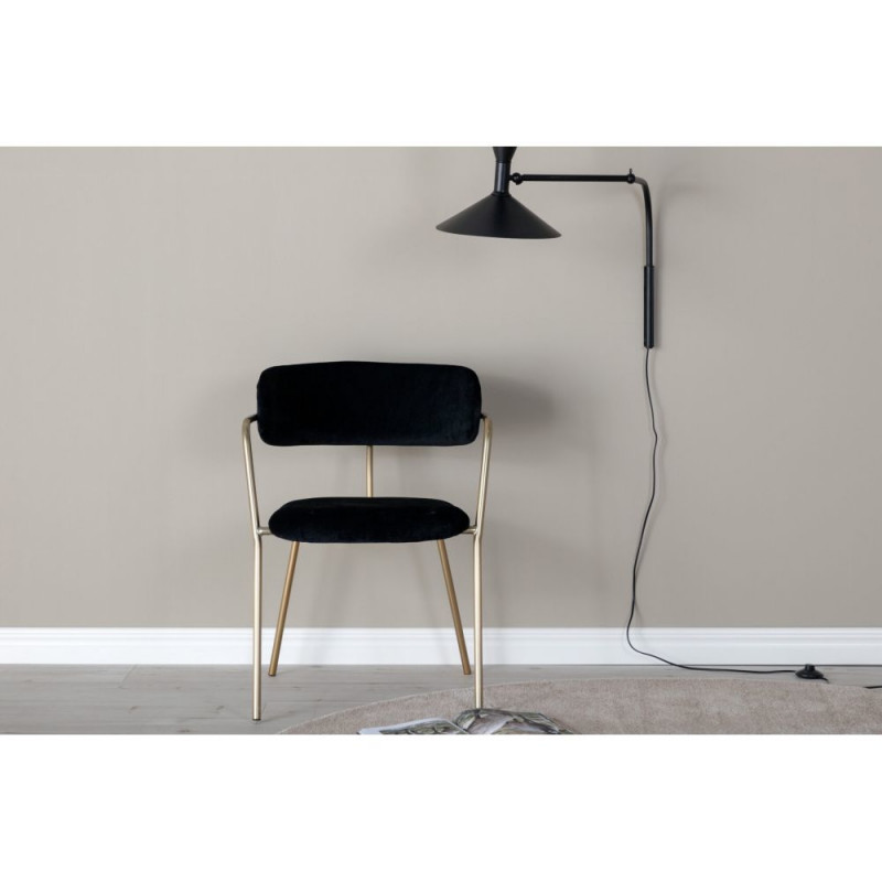 Loo trendikas pilgupüüdja kodu südames! Sellel stiilsel Arrow seeria söögitoolil on kaasaegne raam käetugedega ja messingtoonis metallist jalad. Seljaosa on veidi ümardatud ja istmega kaetud musta sametise kangaga. Tõsta oma kodu sisustus järgmisele tasemele! Istme kõrgus on 47 cm, laius 47 cm ja sügavus 43,5 cm. Kandevõime kuni 150 kg. Toode müüakse 2-pakendis.