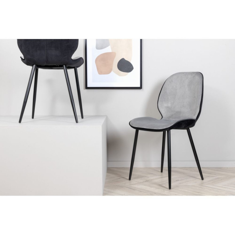 Emma seeria söögitool loob modernse fookuspunkti elutoass oma elegantse disainiga. Tool on sujuvalt ümarate vormidega, istmeosa on valmistatud hallist sametisest polüester kangast ning sellel on õrnalt kõverdunud mustad metallist jalad. Tooli tagaosa on must, luues trendikat kontrasti esiküljega. Istme kõrgus 45 cm, laius 47 cm ja sügavus 40 cm. Kandevõime 200 kg. Toodet müüakse 2-pakendis.
