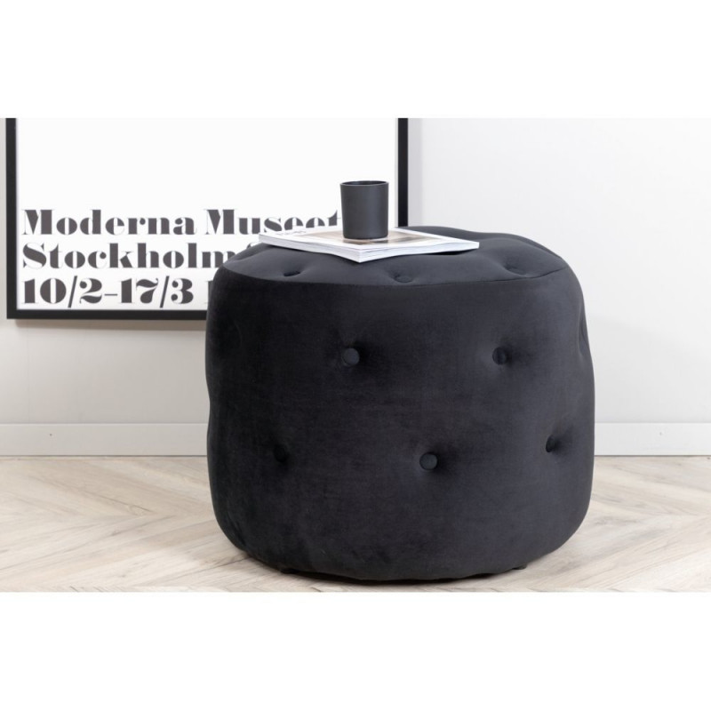 Sisusta oma kodu nutikalt ja stiilselt! Benjamini tumbal on luksuslik disain sügavalt õmmeldud ja kaetud nööpidega sametises polsterduses. Pehmed vormid ja must värv annavad ruumile kutsuva tunde ja elegantse sära. Kasuta lisaistmena, kui külalisi on palju, või jalgu puhkama pärast pikka päeva. Mõõdud: kõrgus 44 cm, läbimõõt 55 cm.