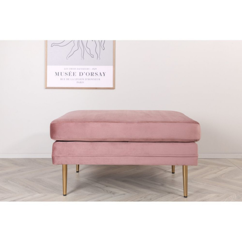 Tumba Boom rikastab teie elutuba erksa värvi ja silmatorkava disainiga. See stiilne istumispadi ühendab põhjamaist disaini pehmete vormide ja kaasaegse mõtteviisiga. Tumba sobib suurepäraselt nii üksinda kui ka koos sama seeria tugitooliga. Padi on valmistatud õrnast roosa sametist ning puit- ja metallraamiga. Messingu värvi jalad on dekoratiivse pulberkattetud metallist ja stiilselt õhukesed. Mõõdud: pikkus 90 cm, laius 70 cm, kõrgus 49 cm.