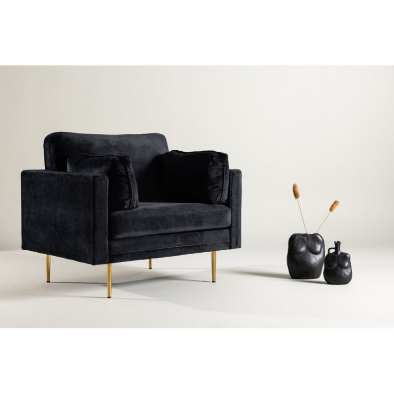 Boom tugitool on kaasaegse disainiga mugav tugitool, mis toob teie koju uue ilme. Kaetud mustast sametisest kangast, annab see tugitool elegantse mulje ja lisab elutoale sära. Sirged kuid pehmeid jooni ja kõhnad, kõrged jalad loovad õhulise ja kutsuva tunde. Läbimõeldud disainiga tugitool, mille kaetud seljatugi võimaldab seda paigutada ka ruumi keskele. Saab kasutada üksikult stiilikoonina või koos Boom sarja teiste mööbliesemetega. Istme mõõdud: laius 88 cm, sügavus 50 cm, istme kõrgus 47 cm.