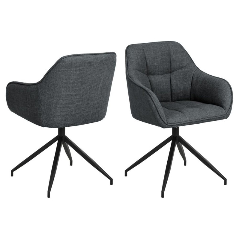 Moodne ja stiilne söögitool käetoega, mis toob disaini ja mugavuse teie söögialasse. Tumehall polsterdus on kaunistatud ruudukujulise õmblusega, mis muudab elegantse söögiatooli veelgi põnevamaks. Kahevärviline efekt annab disainile sügavust. Toolil on must metallist alus ja pööratav funktsioon, mis võimaldab hõlpsalt ringi pöörata. Jalgade kõrgus on 39,5 cm ja kandevõime 110 kg.