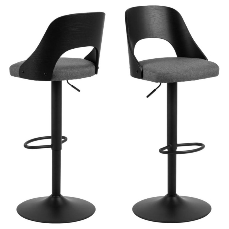 Stiilne baaritool, mis ühendab kaasaegse disaini klassikalise Skandinaavia esteetikaga. Ümmarane seljatugi on valmistatud mustast lakitud tammespooni ning jääb avatuks, tumehall istmepadi lisab mugavust. Must pasunajalg võimaldab kerget liikumist ja pööramist. Baaritooli kõrgus on reguleeritav gaasamordi abil vahemikus 62-84 cm. Seljatoe kõrgus 36 cm, istme laius 47 cm ja sügavus 48 cm.
