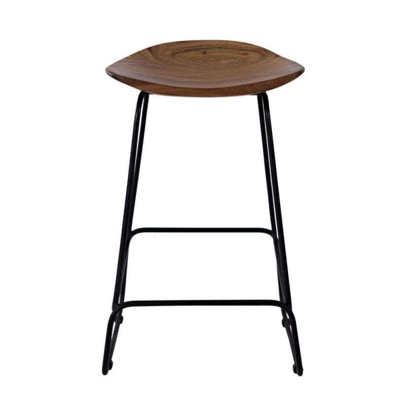 Industriaalstiilis baaritool on valmistatud täispuidust akaatsiaistmest ja vastupidavast metallraamist, pakkudes tugevat ning isikupärast istumislahendust. Profiilne ja ebatavalise kujuga iste rõhutab tooli unikaalset disaini, samas kui pähklitoonis puit ja mustad jalad loovad ajatu kontrasti. Tool tuleb kokku panna vastavalt juhendile.