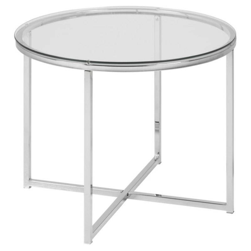 Suurepärane ümmargune diivanilaud, mis täidab teie elutoa interjööri glamuurse puudutusega. Läbipaistev karastatud klaasist lauaplaat ja kroomitud terasest X-kujuline alus lisavad ruumi luksuslikku ja ekstravagantset stiili. Läbipaistev klaas ja hõbedane ristjalg jaotavad valgust kogu ruumis ning on väga lihtsad hooldada. Mõõdud: Ø55x45 cm.