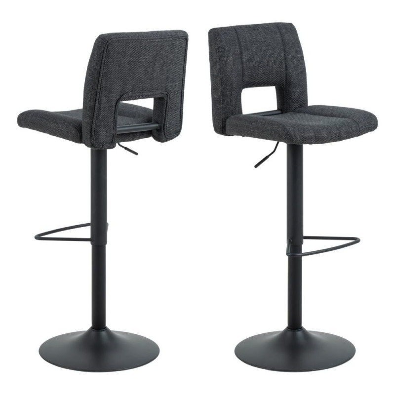 Elegant baaritool SYLVIA klassikalise siluetiga ja L-kujulise polsterdatud istmega. Kaetud struktureeritud tumehalli kangaga, mis loob kahevärvilise efekti. Tugev must terasjalg koos jalatoega võimaldab nii kõrguse reguleerimist kui ka pöörlemist. Istumiskõrgust saab reguleerida 62-83 cm vahemikus gaasamordi abil.