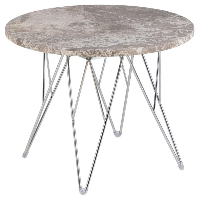 Stiilne ümmargune abilaud PRUNUS sobib nii minimalistlike kui ka maksimalistlike interjööride juurde. Laua pealisplaat on valmistatud silmatorkavast hall-pruunist marmorist, mida toetab kroomitud metallist juhtmealus. Tasakaalustatud proportsioonide kontrast annab disainile kerglase võlu. Abilaud kohaneb kergesti igasuguste interjööristiilide juurde. Mõõdud: Ø55x41,4 cm.