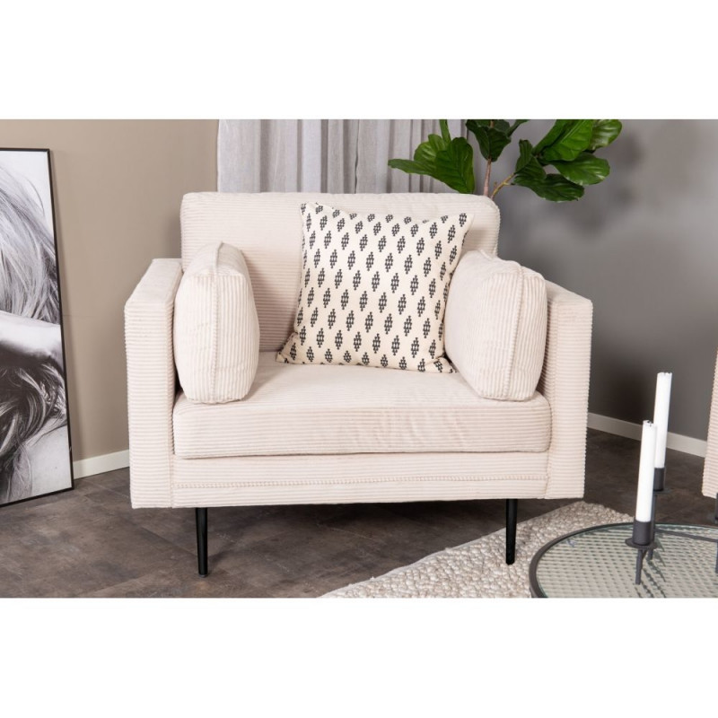 Kaasaegne tugitool, mis ühendab moodsa disaini 50ndate nostalgiaga. Heledast sametkangsast valmistatud tugitool annab elutoale sära ja moodsa välimuse. Sirge kuid samas pehme disain, kitsad kõrged jalad ja sügav iste loovad õhulise ja kutsuva tunde. Läbimõeldud üldine disain tagaküljega, mis võimaldab paigutada tugitooli ruumi keskele. Sobib kasutamiseks üksinda või koos Boom-seeria 3-kohalise diivani komplektis.