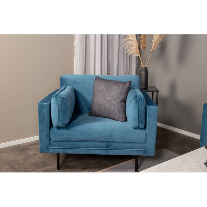 Boom on trendikas tugitool kõrge mugavuse ja stiilse disainiga. Sametkangas annab elutoale imelist läiget ja kaasaegset välimust. Sirge põhjamaine disain on ühendatud pehmete vormide, stiilsete kitsaste jalgade ja rohke istumissügavusega, mis koos loovad õhulise ja kutsuva tunde. Hästi läbimõeldud üldiselt disain koos riietatud seljatoe ja võimalusega paigutada tugitool ruumi keskele. Sobib kasutamiseks nii üksi stiiliikoonina kui ka grupis koos meie 3-kohalise diivani Boom-seeriaga.