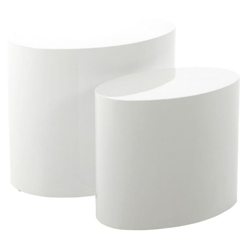Valge läikiva pinnaga ovaalsete laudade komplekt, mis koosneb kahest laudast. Suur laud mõõtudega 48x33x40 cm ja keskmine laud mõõtudega 40x24,5x33 cm. Modernse disainiga laudade komplekt annab elutoale rafineeritud välimuse ja sobib hästi erinevate diivanite juurde. Läikiv poleeritud pind ja ovaalne kuju muudavad selle komplekti silmapaistvaks lisandiks igasse interjööri.