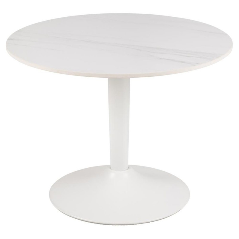 Elegantne ümmargune diivanilaud, mis peegeldab mid-century modern stiili. Lauaplaat on valmistatud valgest keraamilisest materjalist marmori välimuses, mis on nii praktiline kui ka silmale meeldiv tänu kuuma- ja kratsimiskindlale pinnale. Ümmargune terasest alus hoiab lauda stabiilsena. Mõõdud: Ø60x45 cm.