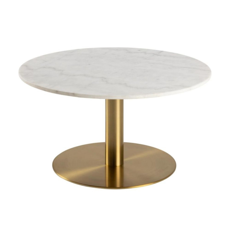 Ümmargune diivanilaud CORBY pakub rohkelt ruumi kandikute, ajakirjade ja kohvi jaoks. Laud on valmistatud poleeritud valge Guangxi marmorist ja seisab ümmarguse harjatud messingvärvilise metallaluse peal. Laua läbimõõt on 80 cm ja kõrgus 45 cm. See sobib suurepäraselt kaasaegsesse kodusisse.