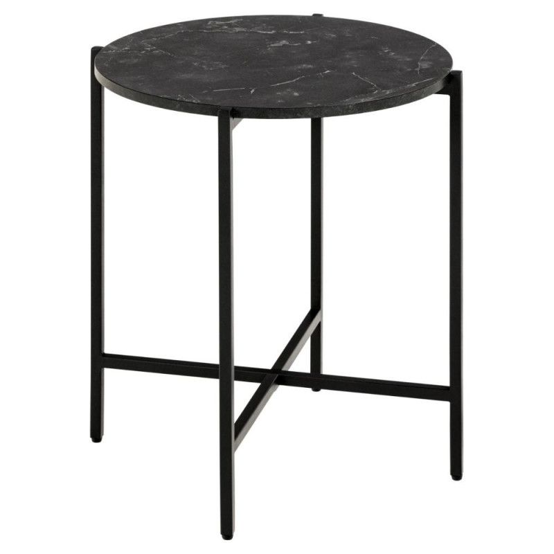 Ümmargune abilaud LAMOINE loob rahulikku tunnet kodus tänu oma musta marmorimitatsiooniga lauaplaadile. Õhuke terasjalg pakub huvitavaid detaile ja visuaalset kerget. Ideaalne koht taime või lambi jaoks. Mõõdud: Ø40x45 cm.