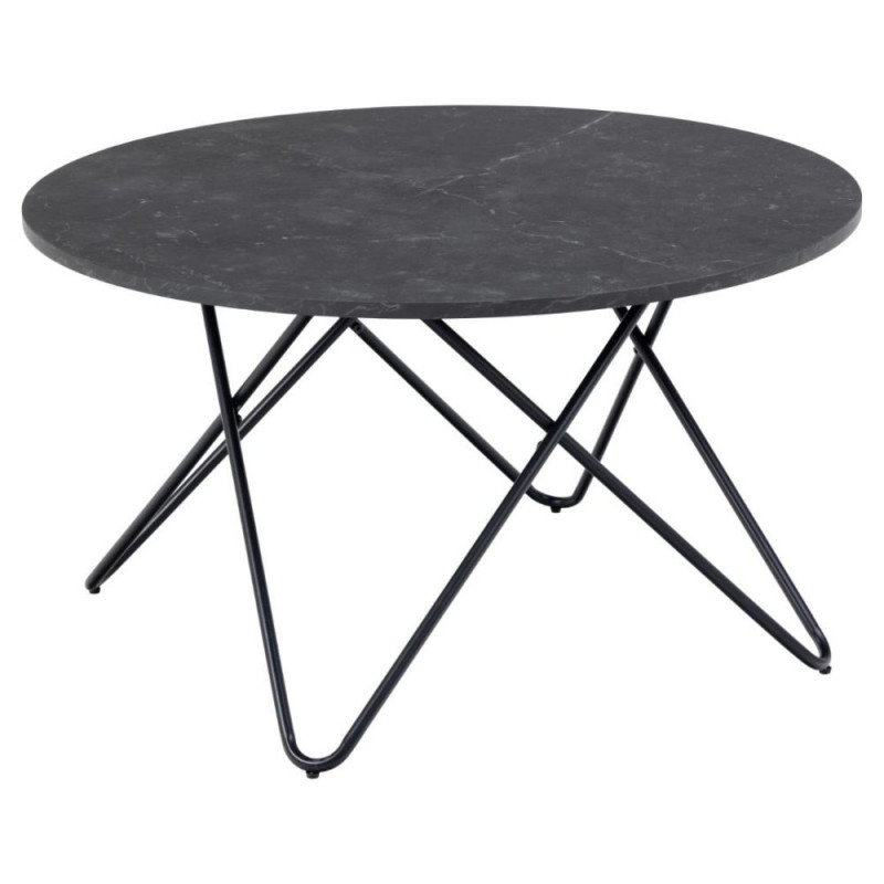WYRE ümmargune diivanilaud ühendab kaasaegse stiili ja 20. sajandi keskpaiga moodsa disaini. Ümmargune lauaplaat on matt musta värviga ja marmori imitatsiooniga, pakkudes stiilset pinda väikestele dekoratsioonidele. Geomeetriline traadist alus on valmistatud mustast terasest, andes laudale mängulise välimuse. Tulemuseks on intrigeeriv diivanilaud, mis sobib nii eklektilisse kui ka minimalistlikku kodusse. Mõõtmed: Ø80x45 cm.