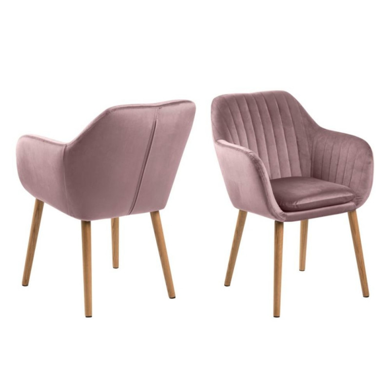Elegantsete koonusjalgedega söögitool, mis toob teie kodusesse söögisaali stiili ja mugavust. Tool on kaetud pehme heleroosa sametise kangaga (Vic fabric dusty rose 18), mis annab toolile rikkuse ja sügavuse. Sametine pind muudab värvi sõltuvalt valgusest, luues elava ja rikkaliku välimuse. Toolil on vertikaalsed õmblused ja süvendatud käetugi, mis tagab mugava istumise. Jalad on õlitatud tammepuidust. Seljatoe kõrgus: 44 cm, istme laius: 40 cm, istme sügavus: 39 cm, istme kõrgus max. 49 cm.