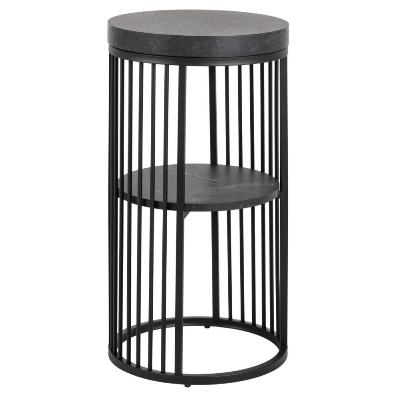 Kaasaegse arhitektuurist inspireeritud Strington öökapp sarnaneb oma kuju ja vormiga sambaga. Ümmargune pealisplaat ja riiul on matt musta Izmir marmorilise väljanägemisega, mida ümbritsevad vertikaalsed terasjuhtmed, muutes öökapi avatud ja samas suletud tunde. Dünaamiline elementide koosmäng loob muljetavaldava efekti. Öökapp on valmistatud hooldusvabadest materjalidest ning selle mõõdud on Ø35x65 cm.