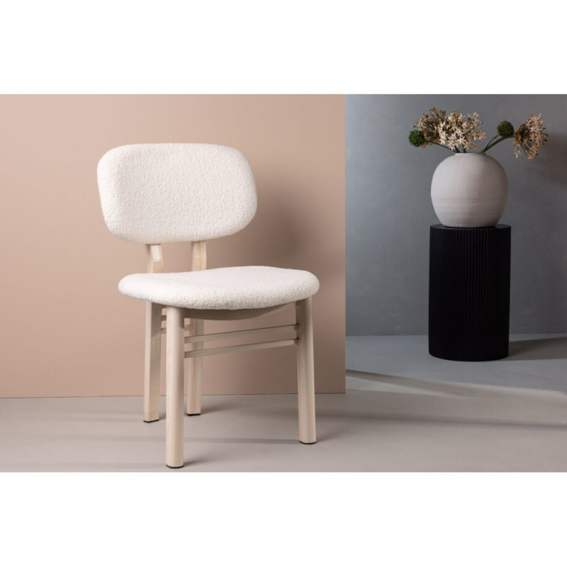 Suurepärane kombinatsioon tugeva disaini ja pehmetest vormidest! Söögitool SIA omab heledaid värve, mis annavad teie koju värske välimuse. Iste ja seljatugi on valgast buklee kangast ning tooli jalad valgendatud puust. See söögitool köidab pilku ja pakub suurt mugavust. Kaunistage oma kodu kutsuvalt ja kaasaegselt!