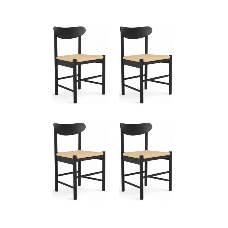 MALOU söögitoolid muudavad söögiruumi elegantseks ja stiilseks. Toolide raami on valmistatud FSC sertifitseeritud tammepuidust musta värvitooniga, mis rõhutab puidu loomuliku tekstuuri. Iste on käsitööna kootud mustast paberköitest, mis annab toolidele ainulaadse välimuse. Toolid sobivad suurepäraselt skandinaavia, industriaalse või Japandi stiilis sisustusega. Istme kõrgus on 45 cm, laius 46 cm ja sügavus 38 cm. Komplektis on 4 tooli.