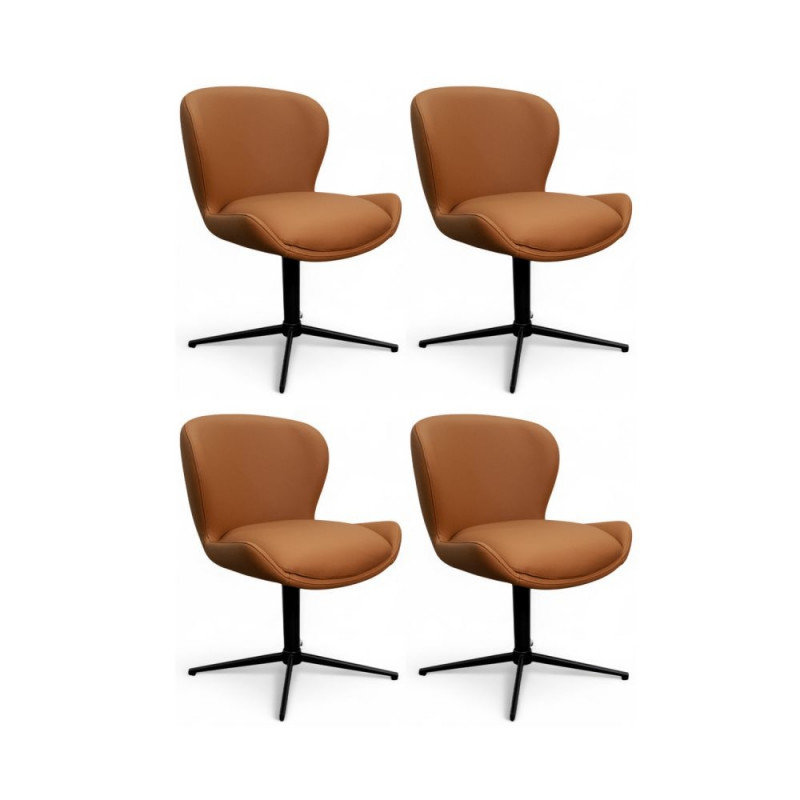 NICKLAS söögitoolid on valmistatud 100% nahast istme ja seljatoe ning vahtpolsterdusega, mis tagab keskmise pehmuse. Toolidel on must metallist raam ja jalad, mis pakuvad kindlat tuge. Istmeid saab pöörata 360° ning neil on tagasipöördumise funktsioon. Puhtad jooned ja kvaliteetsed materjalid sobivad suurepäraselt skandinaavia, industriaalse ja japandi stiilis interjääridesse. Mõeldud igapäevaseks kasutamiseks kodudes. Istme kõrgus 50 cm, kogu kõrgus 83 cm. Tarnitakse 4 tooli komplektina, vajalik kokkupanek.