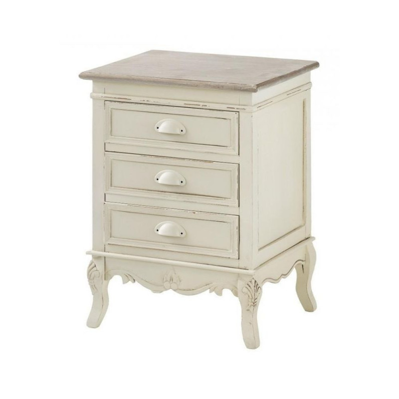 Elegantne Provence'i stiilis öökapp painutatud jalgade ja kahetoonilise viimistlusega. Paulownia puidust kreemjad jalad lisavad lauale õrna ilme. Käepidemed on valmistatud metallist, kaetud kreemja tooniga. Öökapil on 3 sahtlit, mis on varustatud pehme sulgumise mehhanismiga. Mõõdud: 48 cm laiune, 38 cm sügav, 63 cm kõrge.