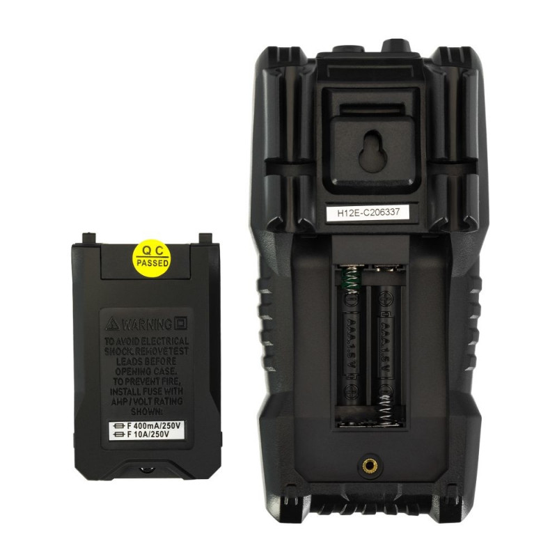 The multimeter is powered by standard batteries.