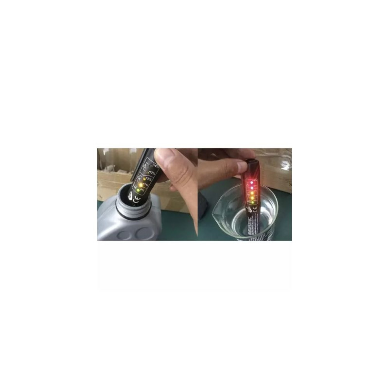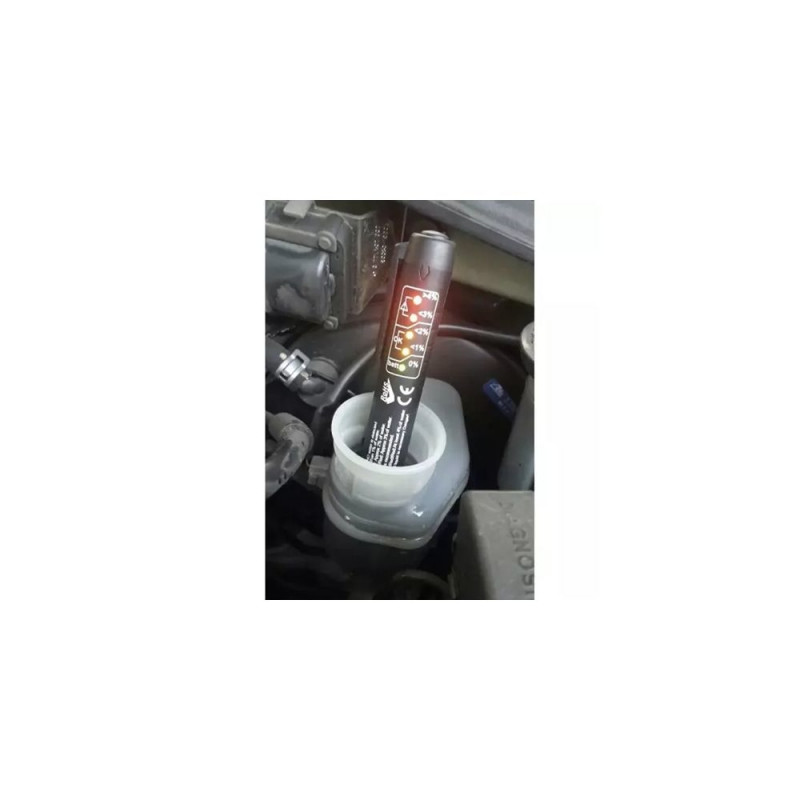 - TÄPNE – testeri tööpõhimõte põhineb pidurivedeliku veesisalduse mõõtmisel. Piisab, kui kastad elektroodid vedelikku. Tänu täpsele mõõtmisele viie LED-dioodi abil võid olla kindel, et saad täpse veesisalduse mõõtmise pidurivedelikus.
