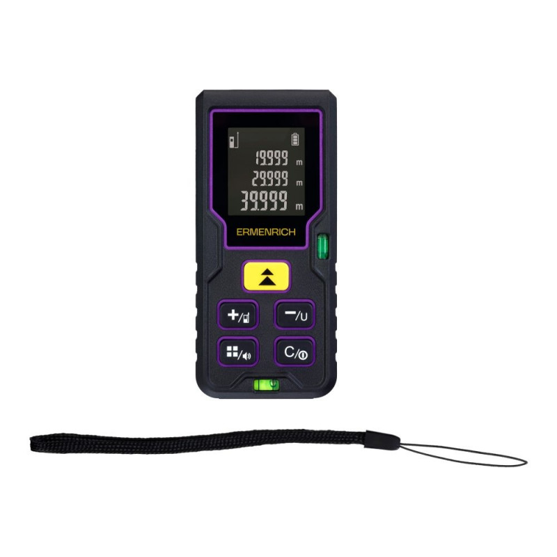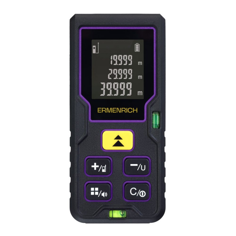 The Ermenrich Reel PLUS GD100 Laser Meter is a multifunctional device for solving a wide range of tasks in mechanical engineering, construction, and renovation. It is best suited to linear, area, and volume measurements of large rooms – up to 100 meters (328ft) on one side. In addition to single measurements, you can also automatically scan a room. The data is displayed on the 3-line LCD screen and up to 20 groups of results can be stored simultaneously. Operation without audible alerts is possible.