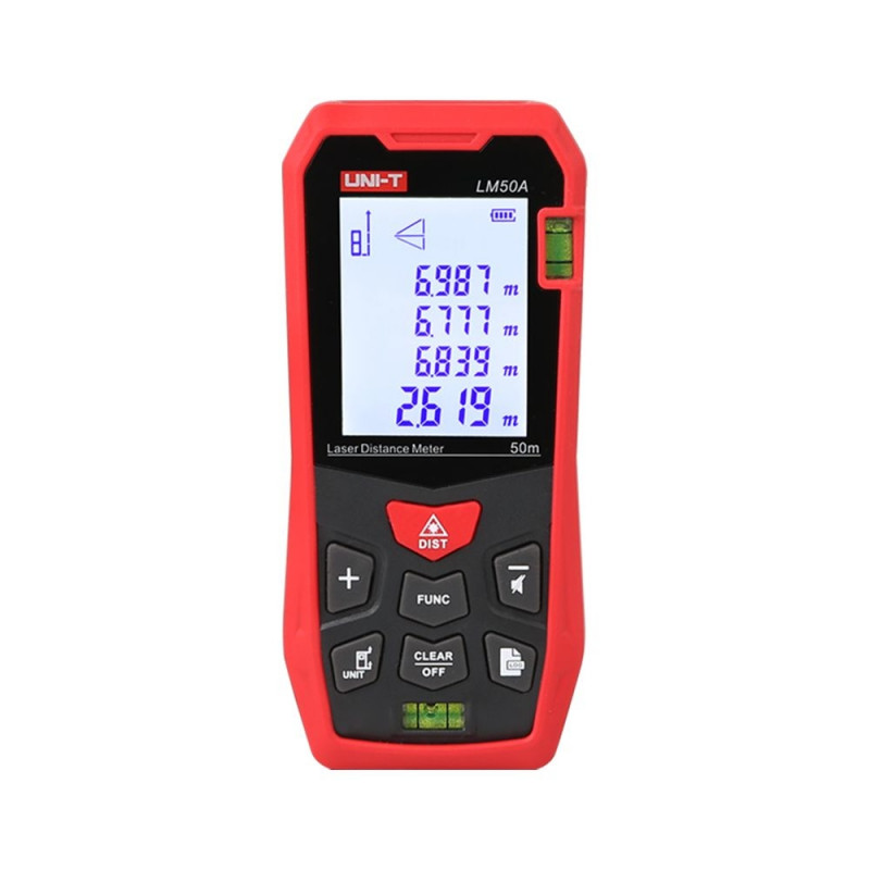 Mitmekülgsed mõõtefunktsioonidUni-T LM50A kaugusmõõtja on varustatud mitmete funktsioonidega, mis lihtsustavad tööd igas mõõtmise etapis. Kasutaja saab teha üksik- ja pidevmõõtmisi, arvutada pindala ja ruumala ning teostada kaudseid ja otseseid mõõtmisi, kasutades Pythagorase teoreemi. Lisaks võimaldab seade mõõtmistulemusi liita ja lahutada ning salvestada kuni 99 mõõtmisgruppi, mis suurendab selle kasutusmugavust.