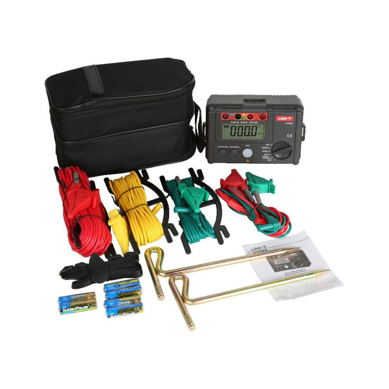 Tarvikud: patareid, 5x mõõtejuhe krokodillklambriga, 2x mõõteelektrood, kott, rihm
