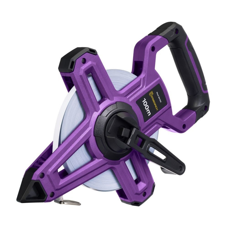 The wear-resistant brushed steel tape is housed in a high-strength ABS plastic case that will not break in the field. The handle is ergonomic, fits comfortably in the hand, and does not slip, as its surface is covered with TPR thermoplastic rubber.