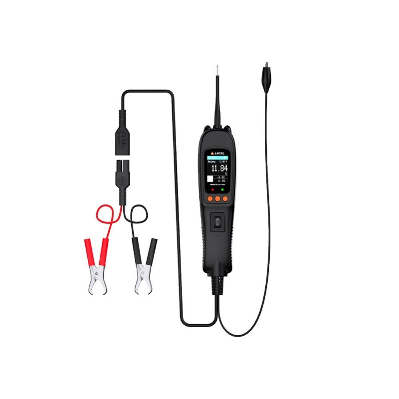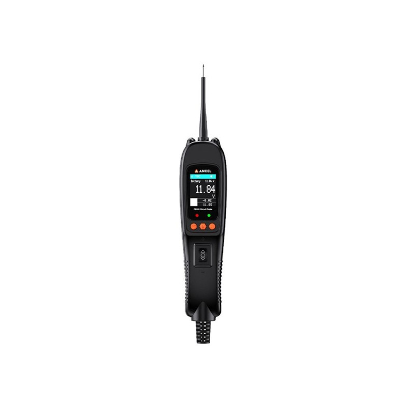 Ancel PB500 on kompaktne vooluringi tester, mis sobib 12–24 V rakendusteks. Seade pakub 7 diagnostikarežiimi, sealhulgas vahelduv- ja alalispinge mõõtmist, takistuse ja dioodi testi, sageduse, töötsükli ning pihusti vooluringi teste. Värviline TFT-ekraan võimaldab reaalajas parameetrite analüüsi ja kiirendab rikete lokaliseerimist.