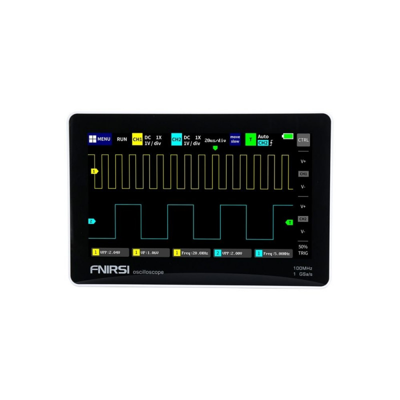 FNIRSI 1013D kaasaskantav ostsilloskoop 7-tollise puuteekraaniga, 2 mõõtekanali, 100 MHz ribalaiuse ja 1 GSa/s diskreetimissagedusega võimaldab täpset signaalianalüüsi hoolduses, töökodades ja elektroonikaseadmete projekteerimisel. Seade on varustatud hästi loetava 800x480 TFT-ekraaniga, automaatse ühe nupuvajutusega signaali seadistamise ning lainekuju salvestamise funktsiooniga, mis võimaldab mugavaid ja kiireid mõõtmisi kõikjal. Toetus nii analoog- kui ka digitaalsignaalide analüüsiks teeb selle sobivaks nii seadmete hoolduseks kui ka isetegemise (DIY) rakendusteks. Sisseehitatud 6000 mAh liitiumaku võimaldab seadmel töötada umbes 4 tundi.