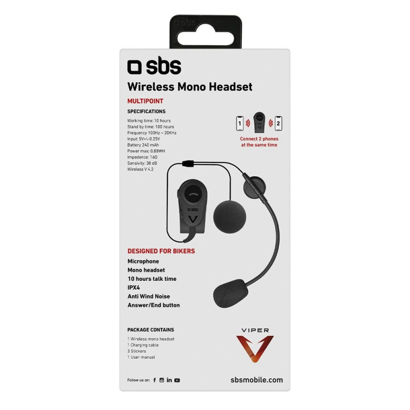 SBS TEEARSETMONOMOTOBTK mono wireless headset for motorcycle helmet - black