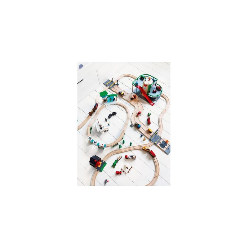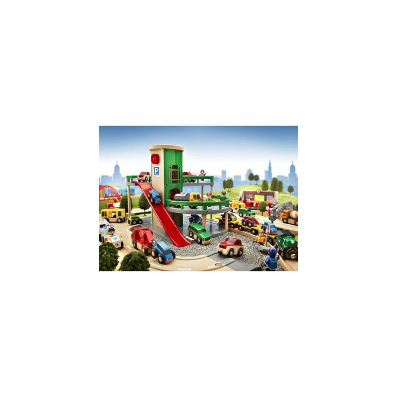 Parking Garage<br>Bring the world of rail and road together in this unique parking garage with multiple levels of fun! Drive to the top and park, take the chute down, fuel up on level 1 or place the car on the ramp on level 2, press the button and see how the car falls into place on the car transporter wagon below on the railway track. Connects to rail and road for easy expansion.BRIO 7312350332049. Product type: Play vehicle track, Theme: Travel, Recommended age (min): 0.3 yr(s), Recommended age (max): 99 yr(s), Product colour: Multicolour
