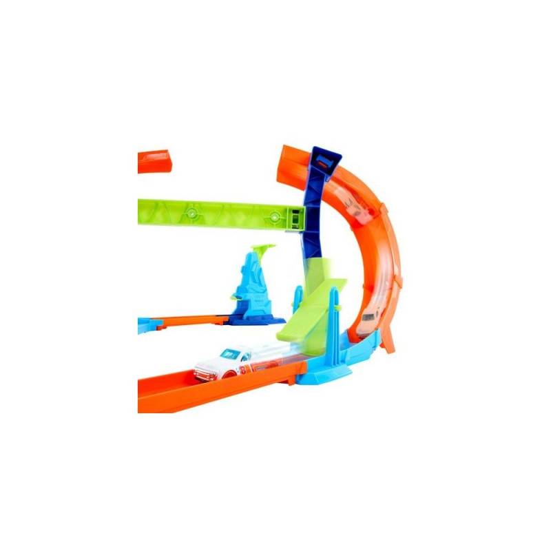 Become the Corkscrew Jump Champion with this adjustable track set! Kids can experiment with their launching skills as they master the corkscrew loop that can separate in the middle for an epic mid-race jump. Start with the corkscrew completely connected, then gradually pull it apart to increase the jumping distance and the challenge. Stick the landing and race through the flipper and off to more track challenges. This set is designed with Speed Snap Track for quick and easy assembly and includes two adapters for compatibility with legacy Hot Wheels e-track. One 1:64 scale die-cast car is included for immediate racing. Additional tracks and sets sold separately. Colours and decorations may vary.Hot Wheels Stunt Tracks Corkscrew Jump Champion Track Set & 1:64 Scale Toy Car, Speed Snap Track. Product type: Vehicle & track set, Recommended age (min): 4 yr(s), Recommended age (max): 99 yr(s), Material: Plastic, Product colour: Multicolour