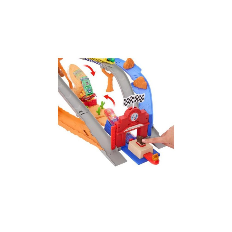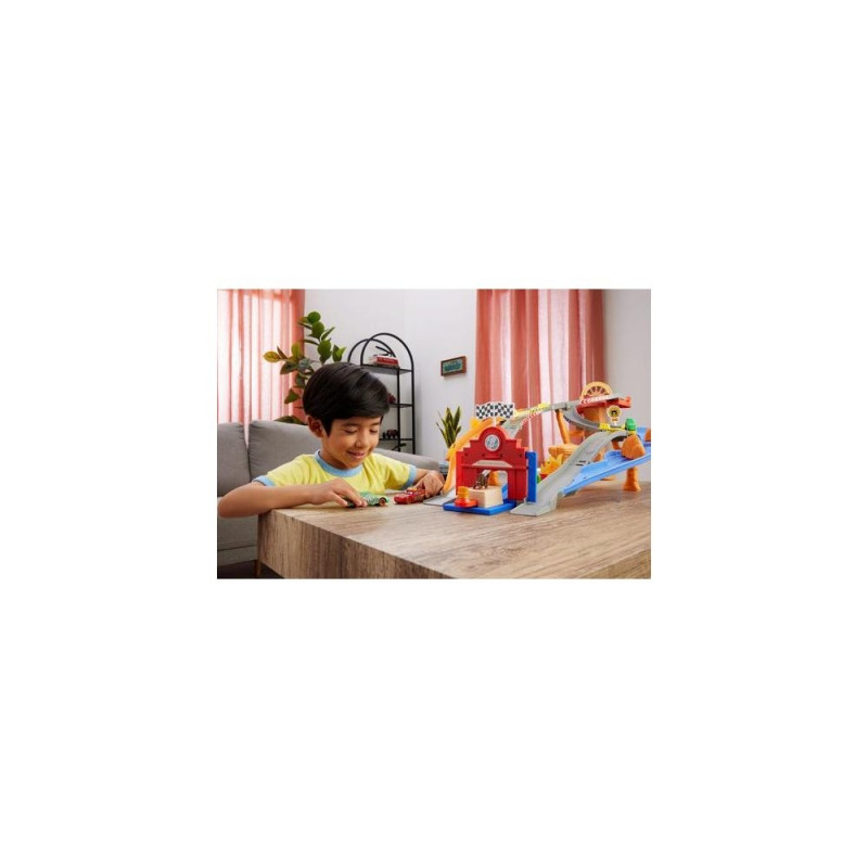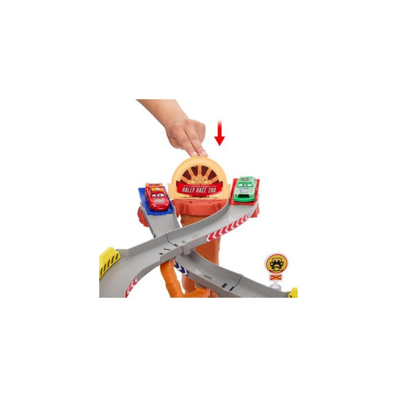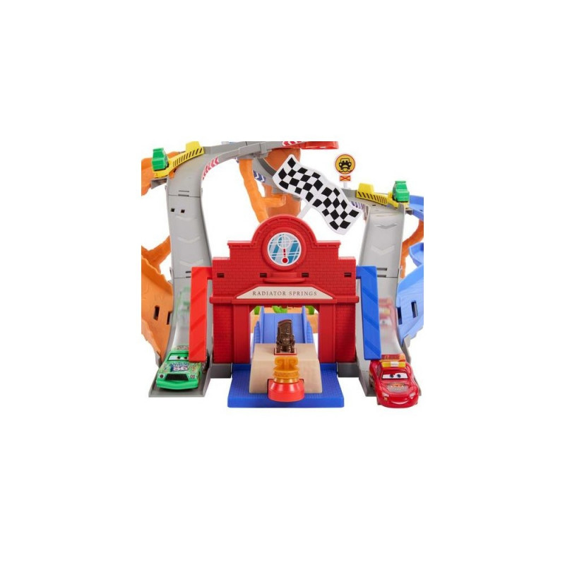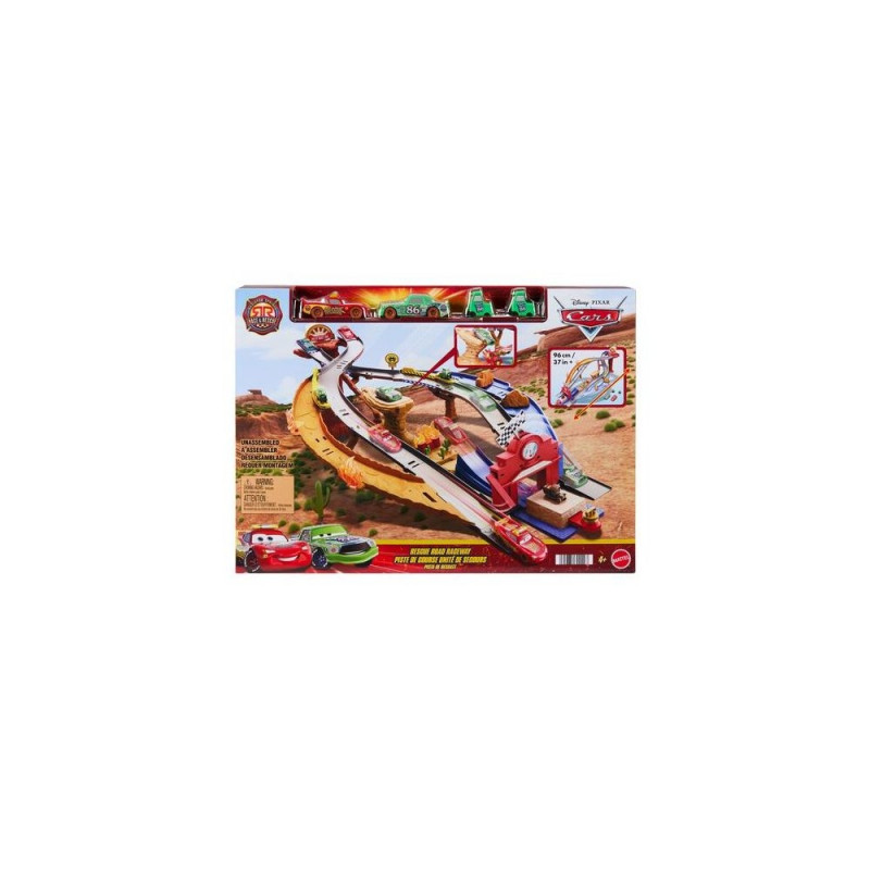 Chick Hicks and his Pitty crew are causing all kinds of trouble in the Radiator Springs Rally Race 200, and it's up to Lightning McQueen to save the day. With the Disney and Pixar Cars Rescue Road Raceway playset, there are two ways to play: race Lightning McQueen against Chick Hicks or send the Lightning McQueen into rescue mode to clear the paths and be the hero. The set also includes two Pitty characters for enhanced storytelling. Colours and decorations may vary.Disney Pixar Cars Disney and Pixar Cars Radiator Springs Race & Rescue Rescue Road Raceway Playset with 4 Toy Cars. Product type: Vehicle & track set, Recommended age (min): 4 yr(s), Recommended age (max): 99 yr(s), Material: Metal, Product colour: Multicolour